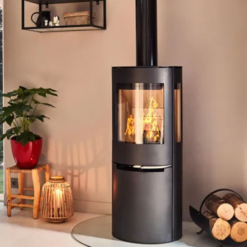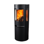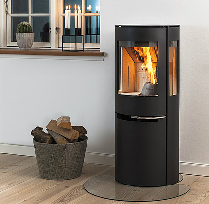 Kaminen är utrustad med stora sidoglas som ger en fantastisk insyn till lågorna. Designen är framtagen av den danska formgivaren Casper Storm och ger ett modernt, stilrent uttryck som passar i både traditionella och moderna hem.